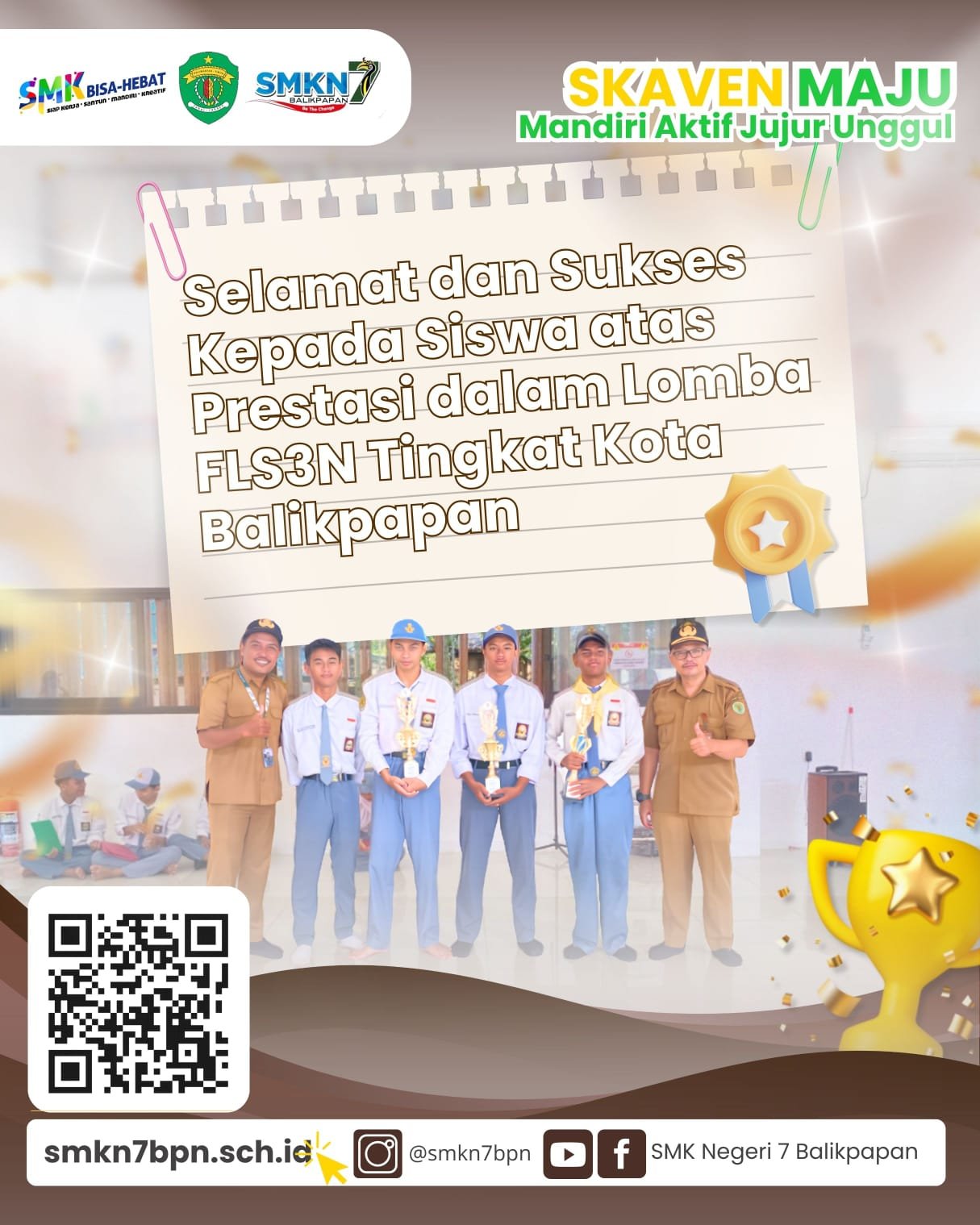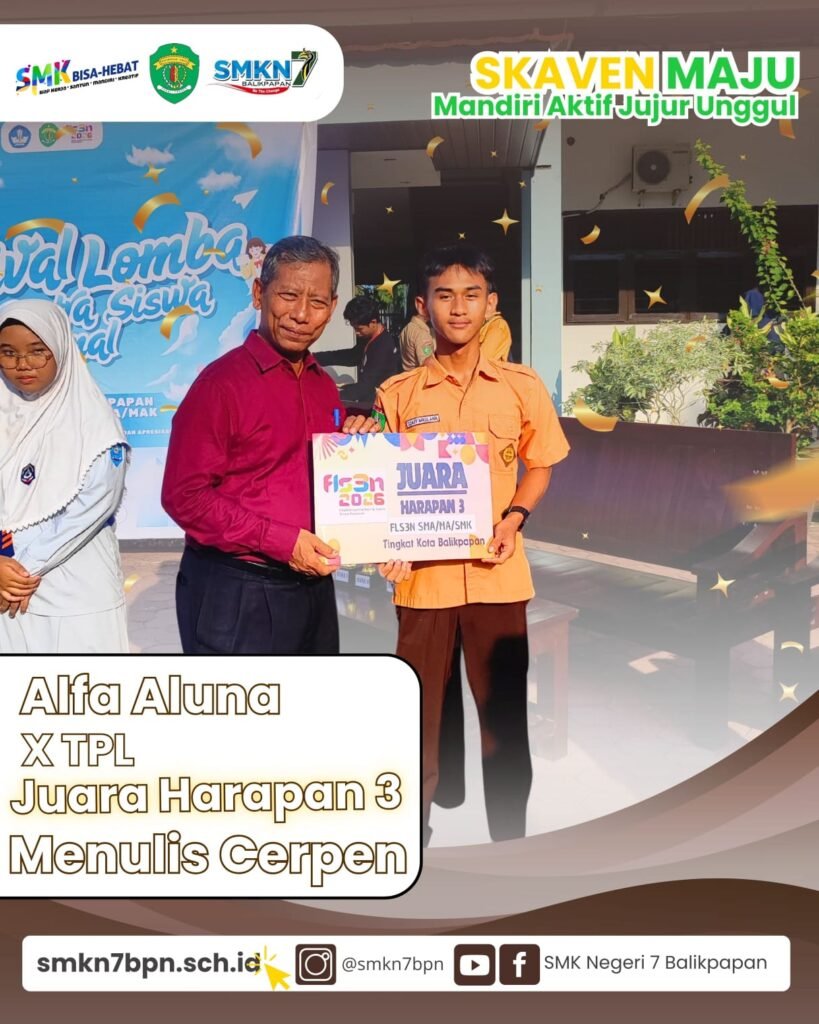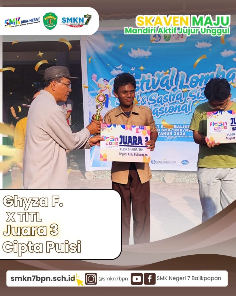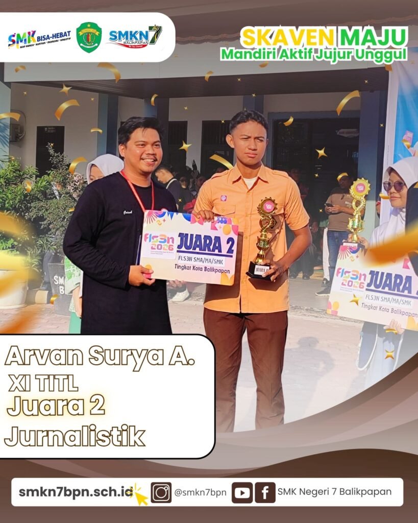 Balikpapan – Prestasi membanggakan kembali ditorehkan oleh siswa-siswi SMK Negeri 7 Balikpapan dalam ajang Festival dan Lomba Seni Siswa Nasional (FLS3N) tingkat Kota Balikpapan. Dalam kompetisi